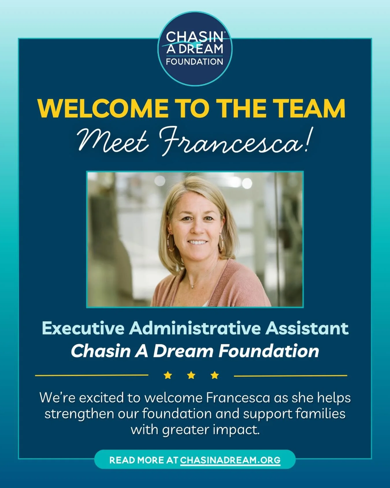 Founder, Lori Griffith, previously worked in the healthcare industry for the past 18 years, giving her a first hand look at what these children and their families face on a day to day basis. Lori wanted to be able to make more of a direct impact by providing life-changing assistance year round so she dedicated herself to building Chasin A Dream Foundation, based on her belief in community and Locals Helping Locals®.